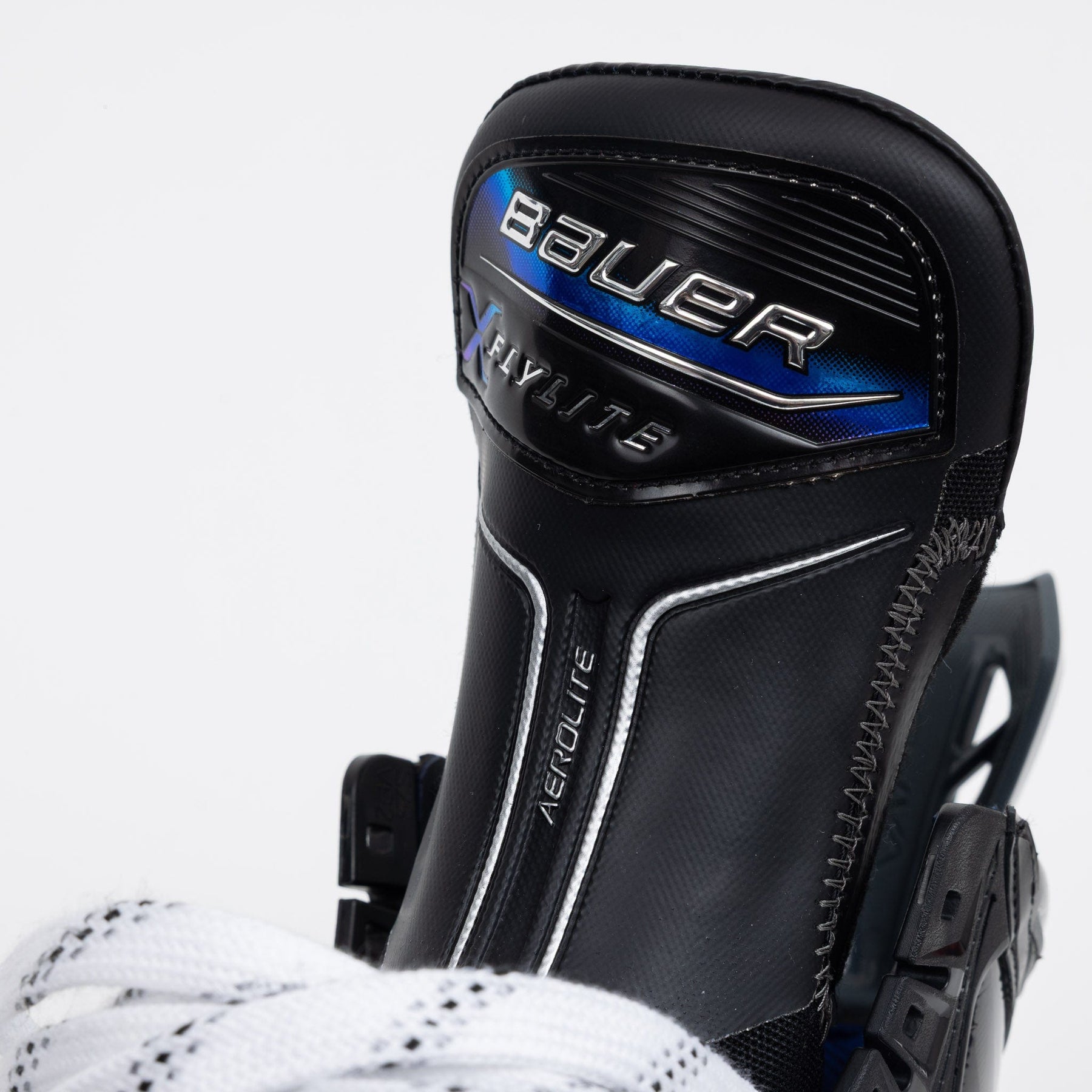 Flylite 스케이트의 그래픽은 스케이트 전체에 걸쳐 검은색으로 표현됩니다. 바우어는 스케이트 측면과 뒷면에 Flylite 로고를 흰색과 은색으로 강조하여 Hyperlite2와 유사한 느낌을 더했습니다. 또한, 파란색과 보라색이 스케이트의 외관을 더욱 돋보이게 합니다.