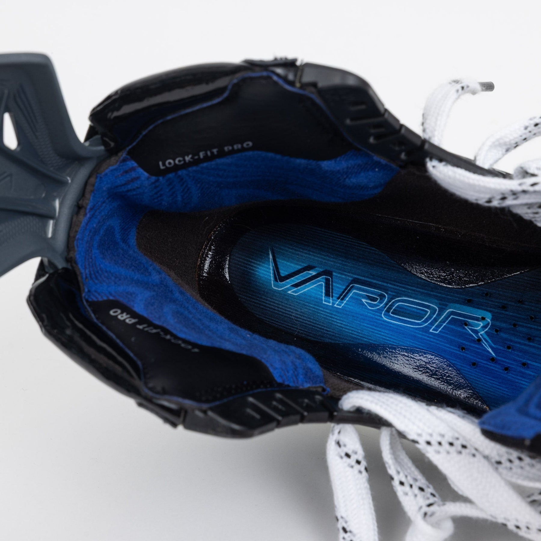 바우어 베이퍼 플라이라이트 스케이트는 록핏 프로 라이너가 기본으로 제공됩니다. 라이너 아랫부분에는 그립 소재인 티모자(tMoza)가 적용되어 보폭을 조절할 때 발이 움직이지 않도록 보호하고, 윗부분은 부드러운 소재인 티모자(tMoza)로 디자인되어 성능 저하 없이 발에 딱 맞습니다. 또한 발목 부분에는 에어로폼 프로(Aerofoam Pro) 패딩이 적용되어 뛰어난 착용감을 선사합니다.