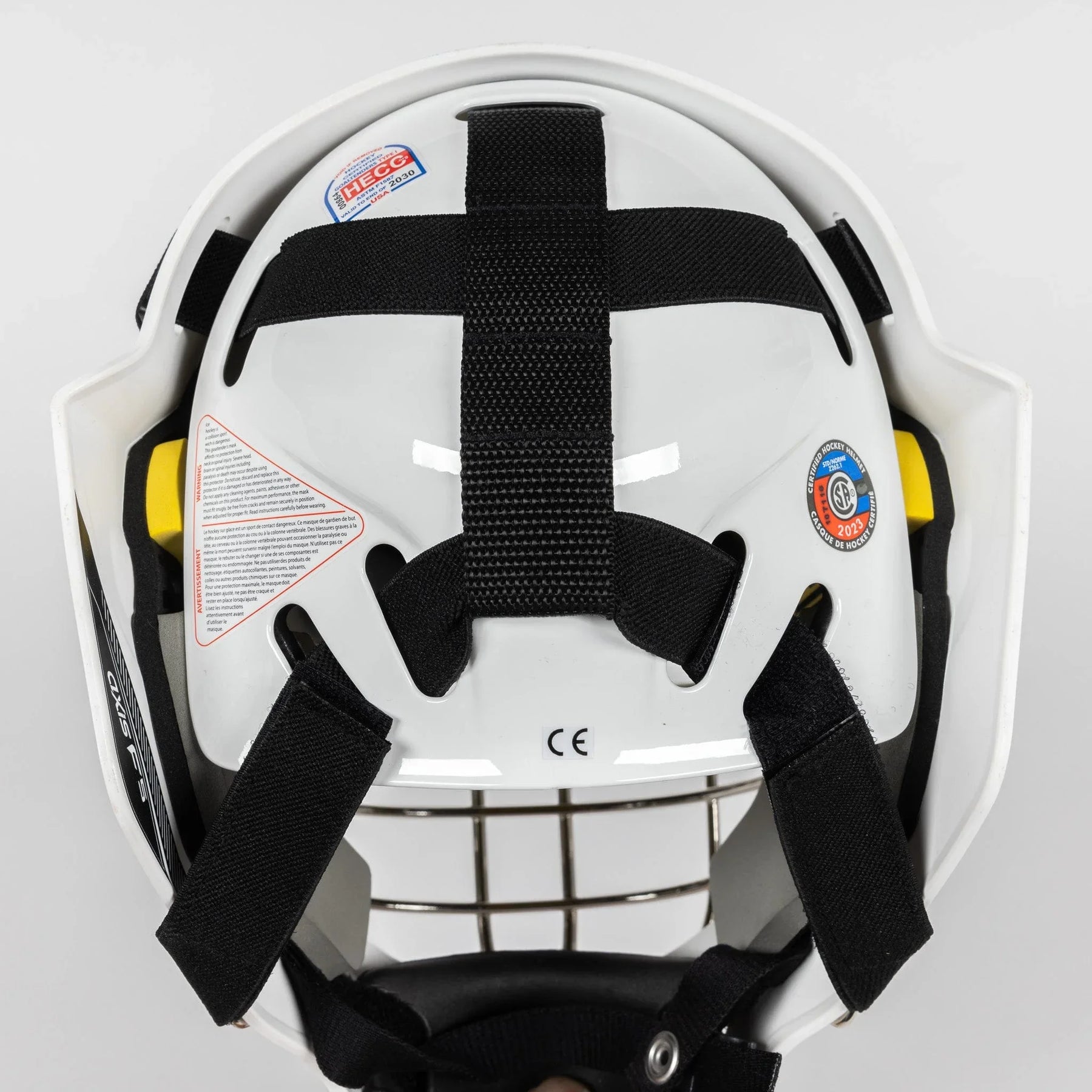 CCM Axis F5 유스 골리 마스크는 성인용 크기로 제공되며, 단일 크기의 헬맷입니다. 또한 흑백으로 제공됩니다.