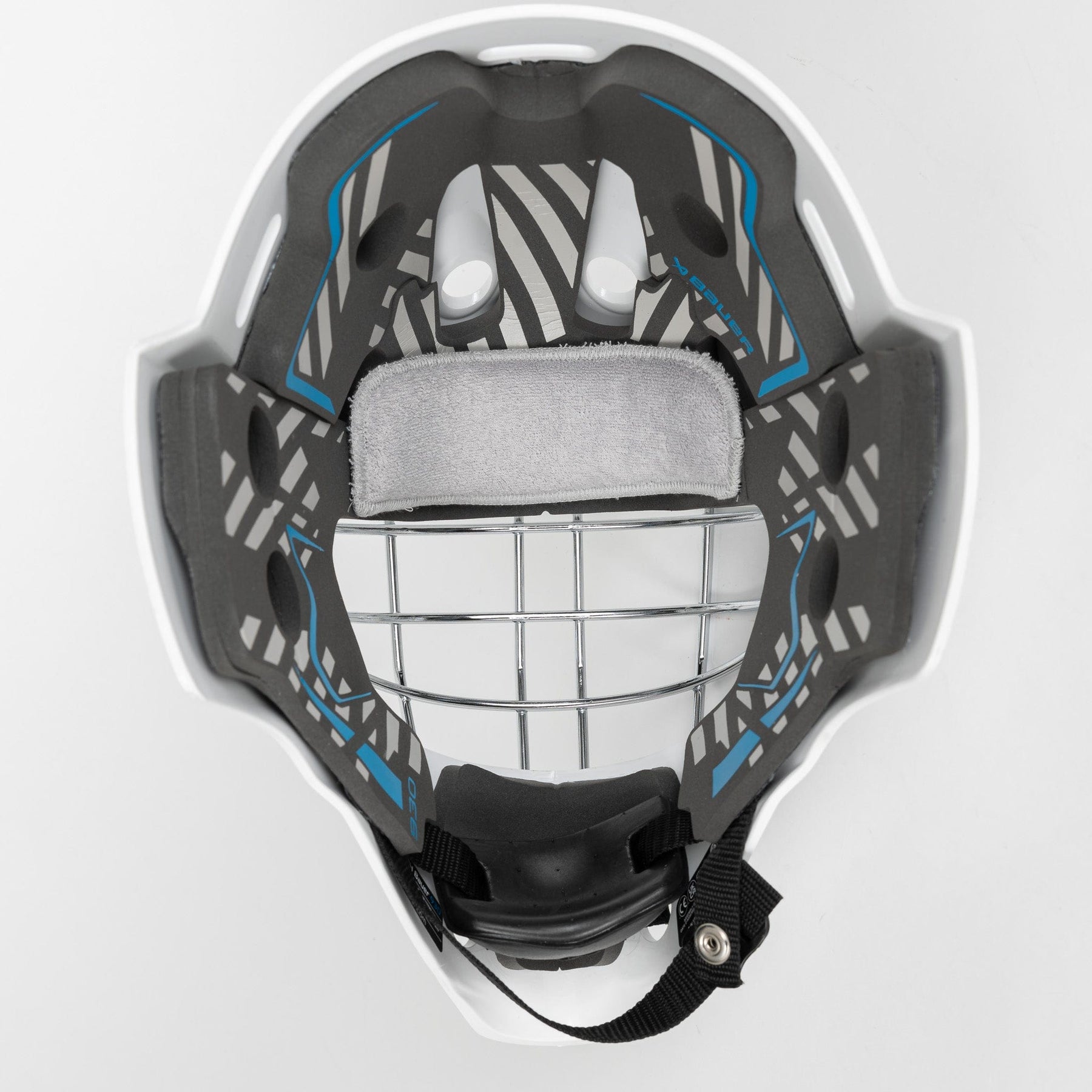 Bauer 930의 특징은 새로운 프로 비전 와이어로 제작되어 골키퍼가 얼음 위에서의 움직임을 더 쉽게 볼 수 있다는 것입니다.