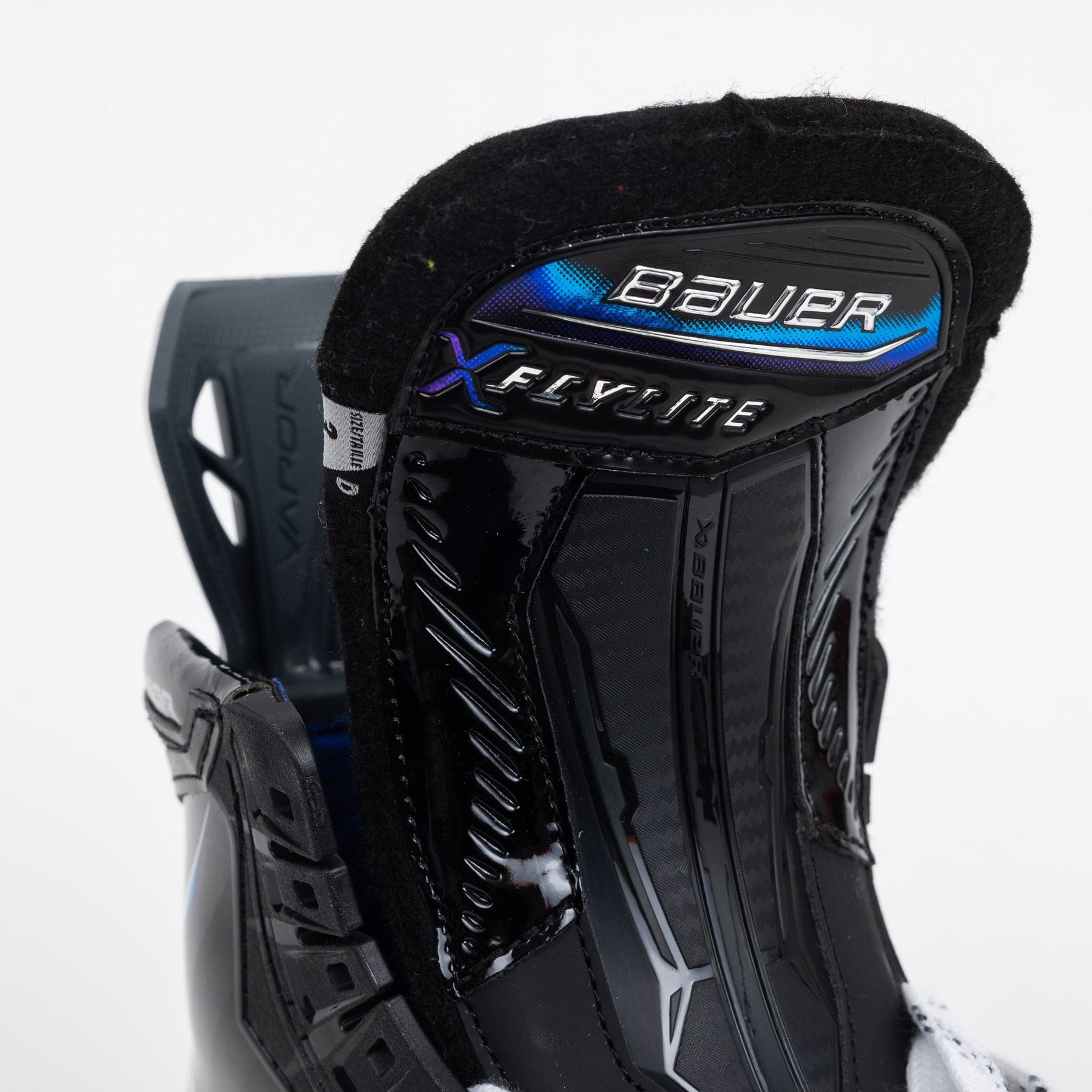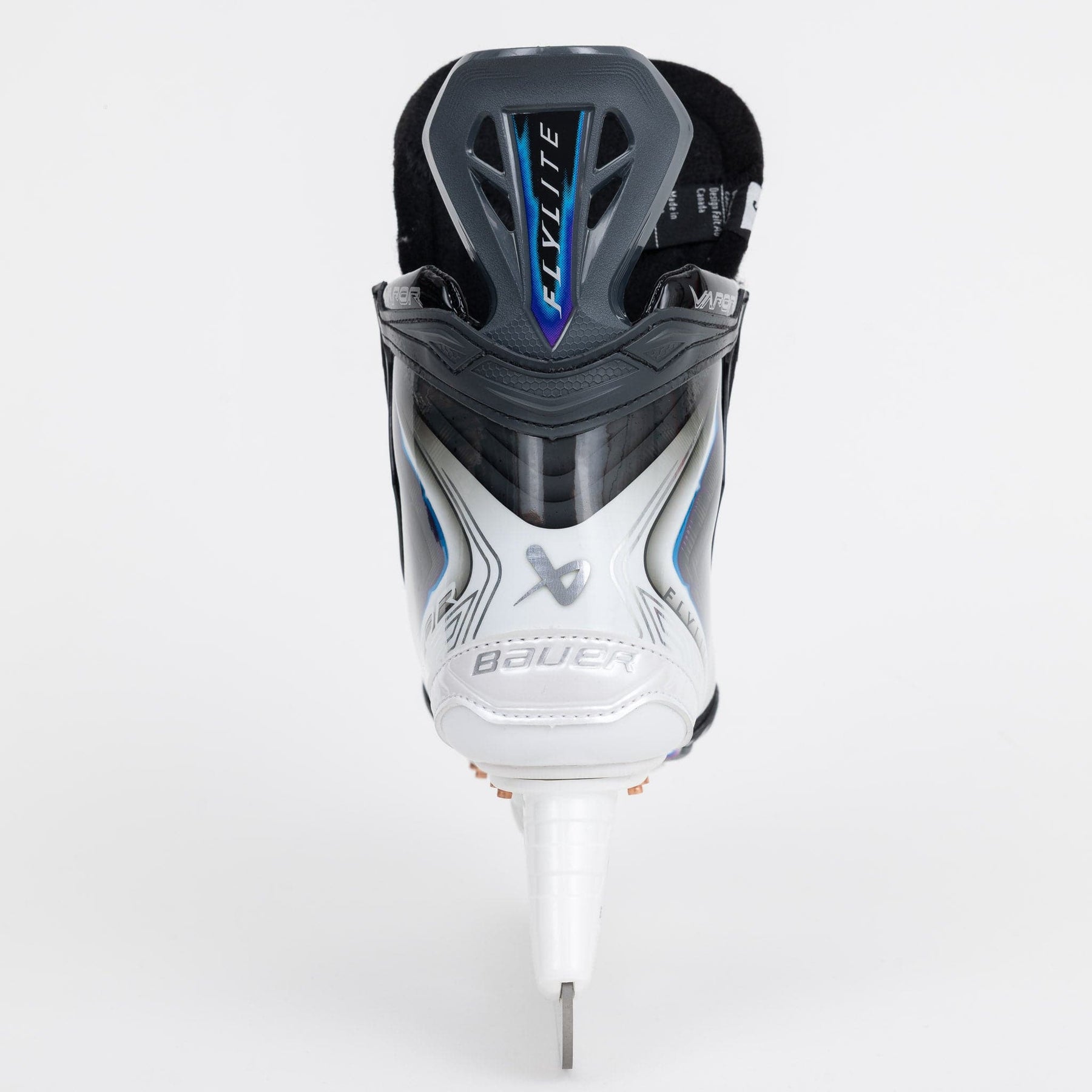 Bauer는 엘리트 스포츠 스케이트에 사용된 이전 Vapor 라인 40oz 프로 스톡 텅에서 업그레이드된 Flylite 스포츠 스케이트에 48oz 프로 스톡 텅을 구현했습니다.