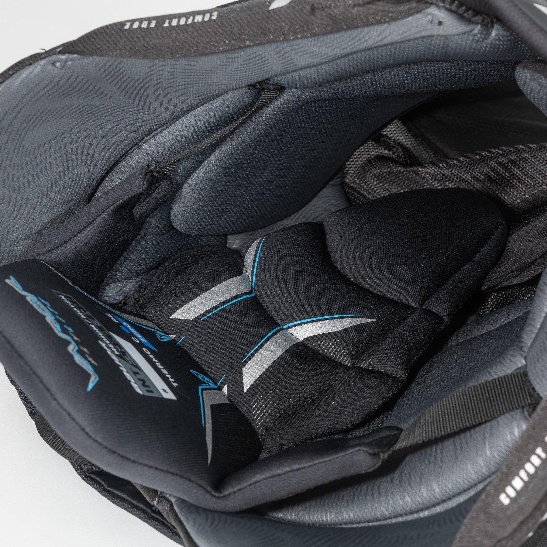 엉덩이 부위는 Aerolite 2.0 엉덩이 보호대로 보호됩니다. 이는 엉덩이 부위를 더욱 가볍고 안전하게 보호하는 데 도움을 주는 지속적인 개선 사항입니다. Aerolite는 Bauer에서 제공하는 가장 가벼운 폼 소재로, 충격과 물을 튕겨내는 기술이 적용되었습니다. 이러한 발수성 덕분에 패드가 물에 젖어 무거워지는 것을 방지할 수 있습니다.