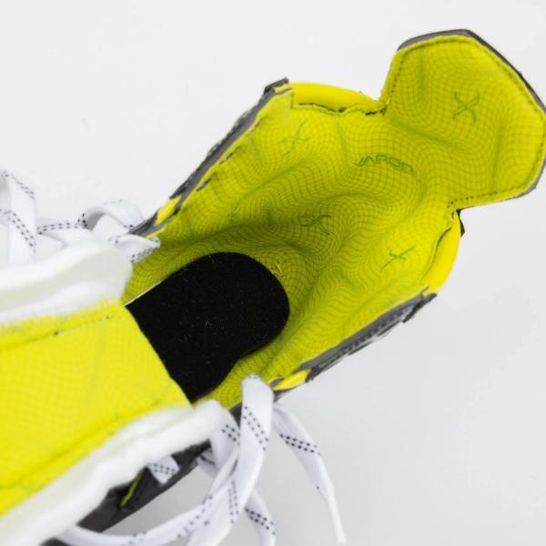 Fly40은 이전 세대 Bauer 하키와 유사한 전통적인 끈 시스템을 사용합니다. 전통적인 아일렛은 끈을 단단하게 고정하는 데 있어 중요한 역할을 해왔으며, Bauer는 2025년에도 이를 계속 사용하고 있습니다. 아일렛을 따라 있는 표준 플렉스 페이싱 레이스 시스템은 사용된 소재의 내구성과 신뢰성을 향상시켰습니다.