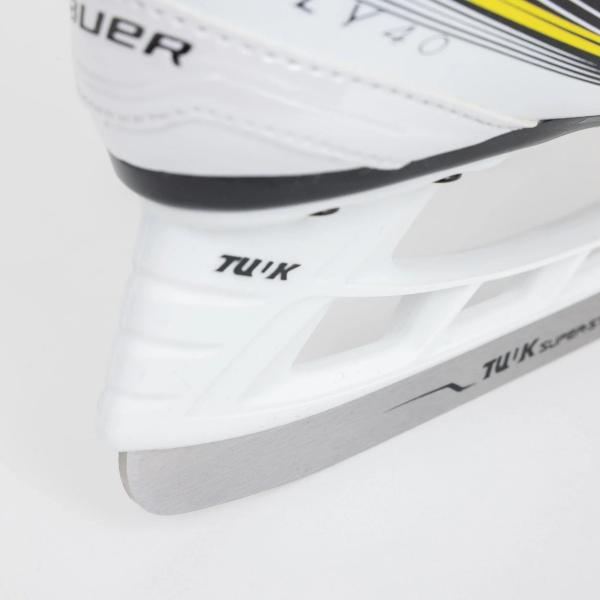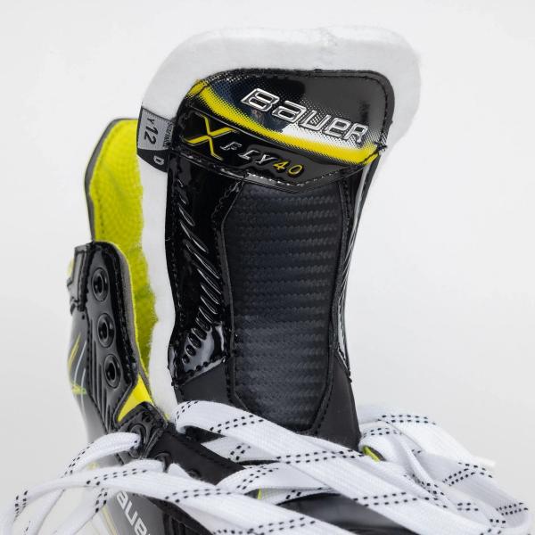 바우어는 Fly40에 편안한 엣지가 있는 승화 라이너를 사용합니다. 이 디자인은 스케이트 안에서 선수들의 발을 건조하게 유지하여 더 가볍게 만들고, 편안한 엣지는 부츠 컷 쪽으로 추가적인 편안함을 제공하여 착용 중 발생할 수 있는 자극을 방지합니다.
