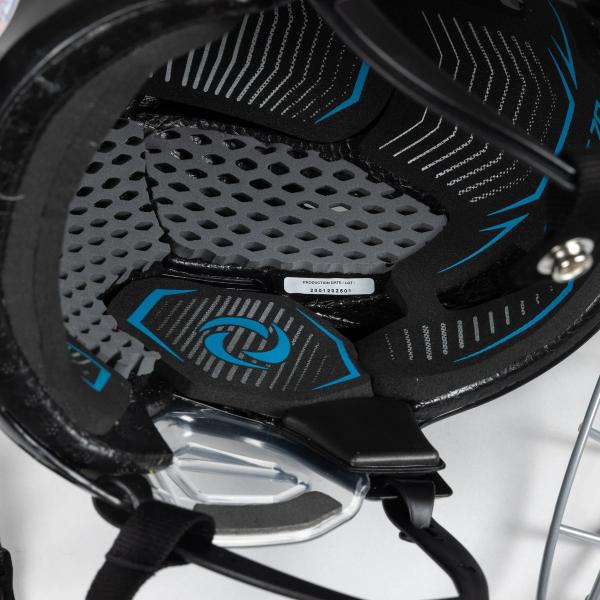 헬멧 내부에는 부드럽고 중간 밀도의 폼을 조합하여 선수들의 머리를 감싸 보호할 수 있도록 설계했습니다. 이 디자인은 부드럽고 편안하며 머리에 꼭 맞는 착용감을 제공할 뿐만 아니라 가볍습니다. 안감에는 땀 흡수 밴드가 있어 습기를 조절하고, 헬멧 전체에 통풍구가 있어 시원하고 쾌적한 착용감을 유지합니다.
