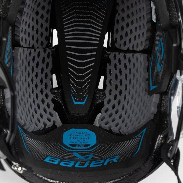 헬멧 조정을 위해 Bauer는 모노락 조정 시스템을 계속 사용해 왔습니다. 이 시스템은 사용하기 쉬운 단일 메커니즘으로 헬멧을 원하는 어떤 핏으로든 조정할 수 있어 연주자에게 안정적이고 편안한 착용감을 제공합니다. 도구 없이 헬멧의 일부를 뒤집기만 하면 머리 모양과 너비에 따라 어떤 크기로든 헬멧을 조정할 수 있습니다.