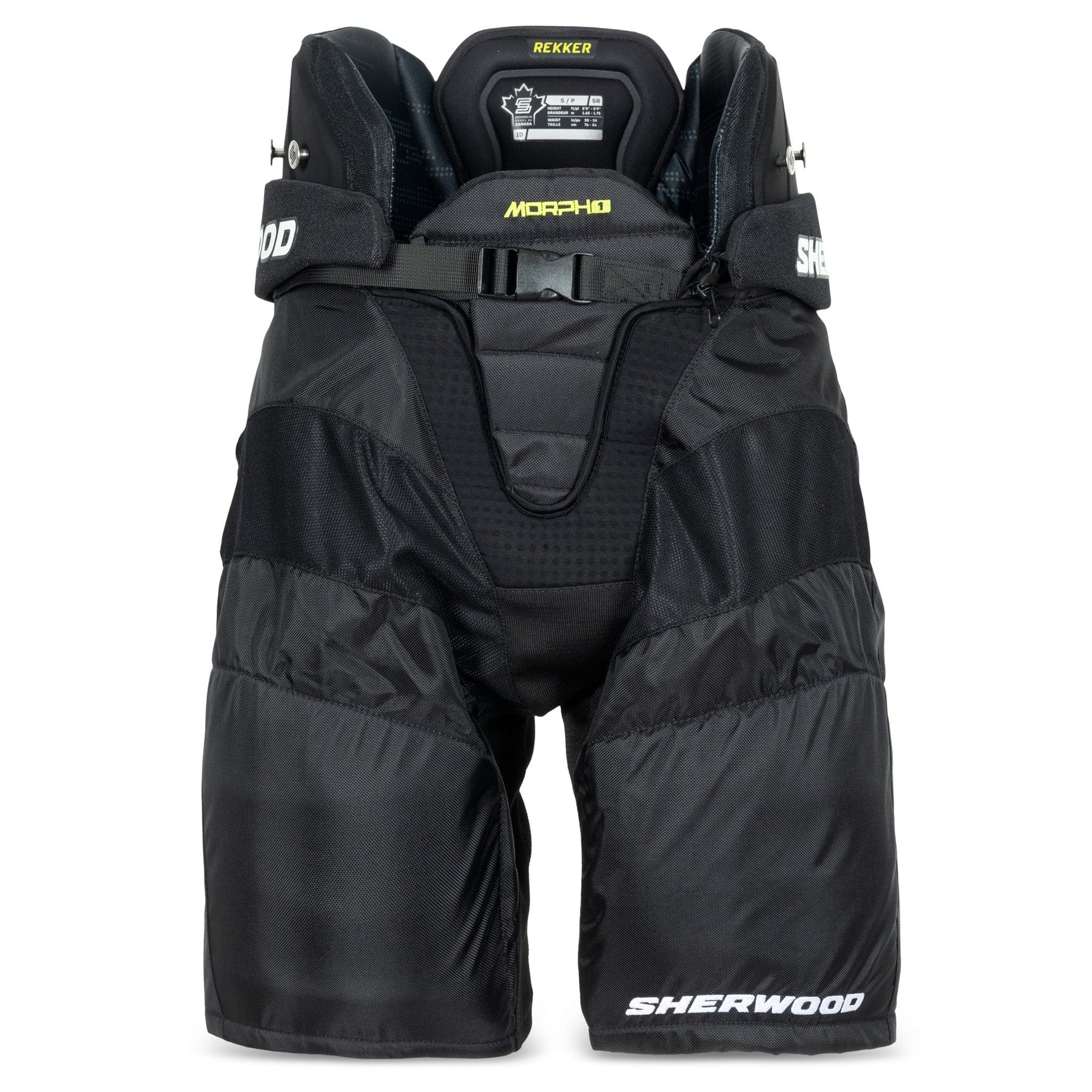 Sherwood Rekker Morph 1 성인 하키 팬츠는 검정색으로 출시되며, 사이즈는 Small, Medium, Large, Extra-Large입니다.