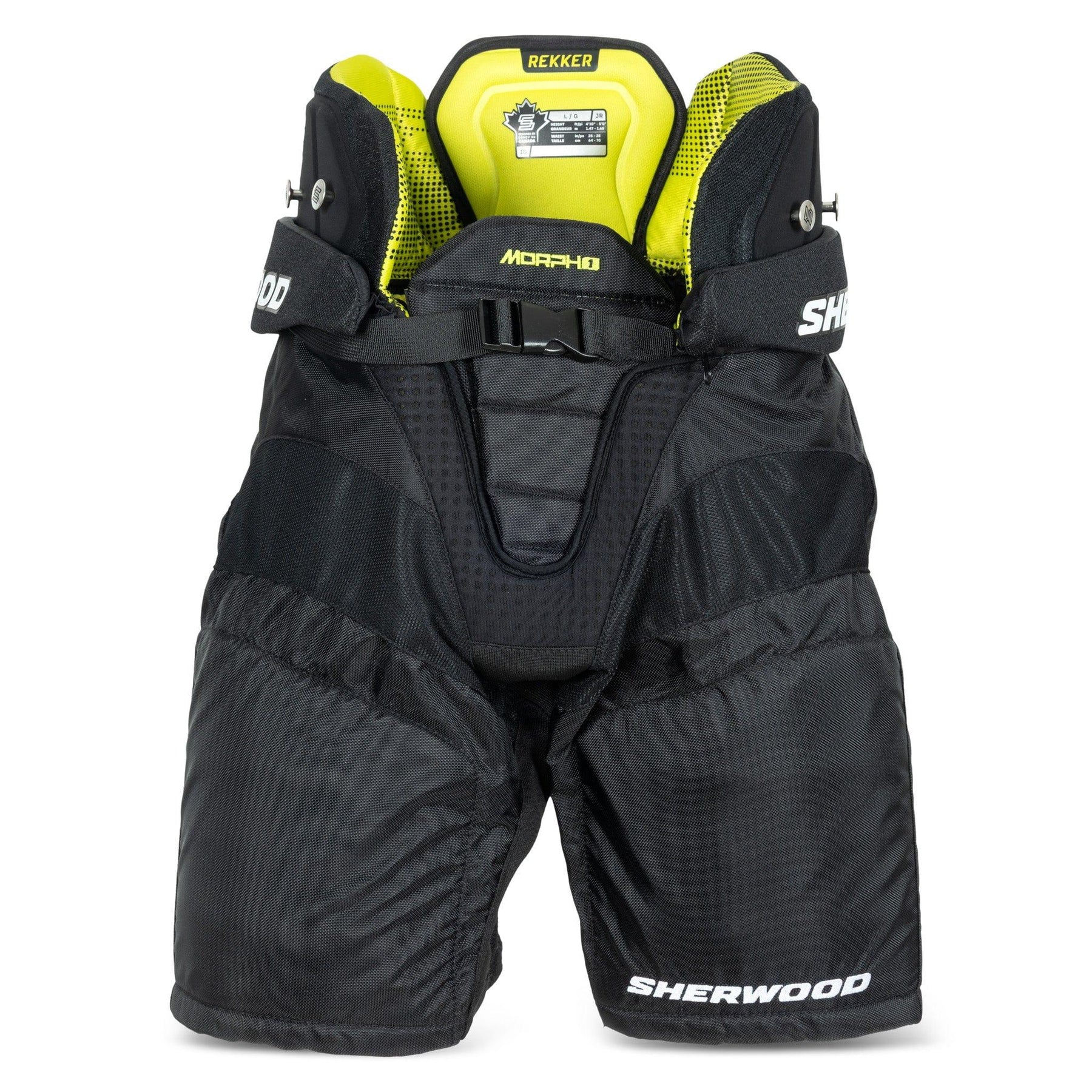 Sherwood Rekker Morph 1 모험 하키 팬츠는 검정색으로 제공되며 크기는 소형, 중형, 대형 및 초대형입니다.