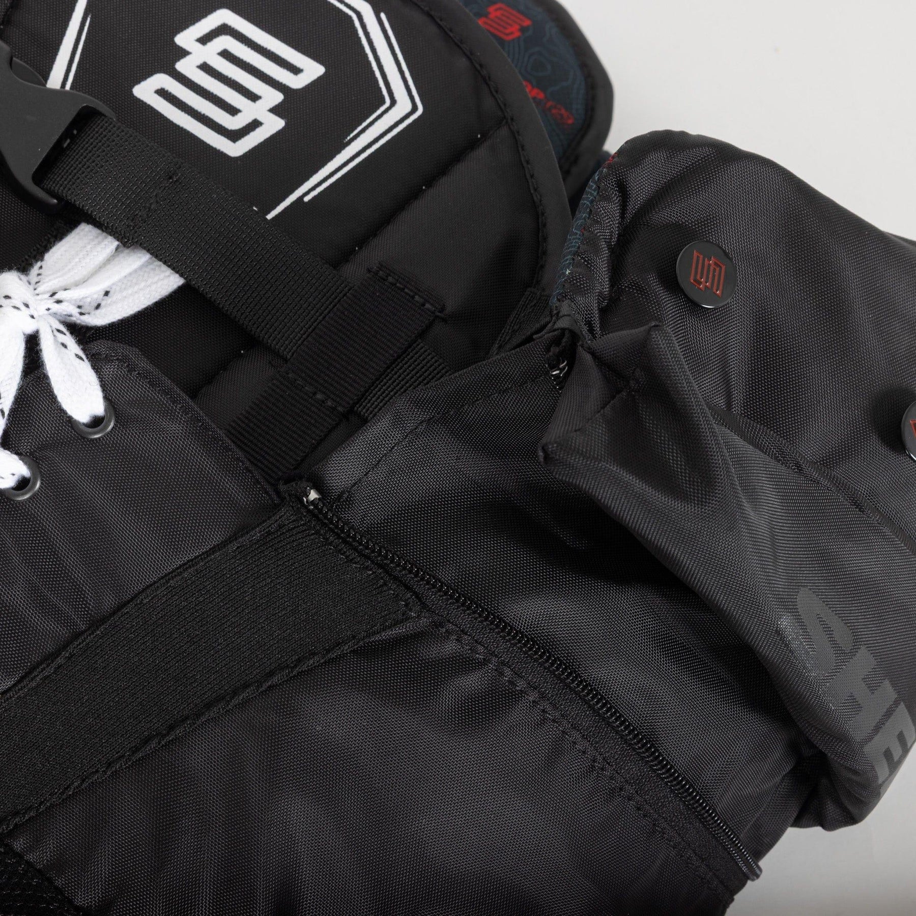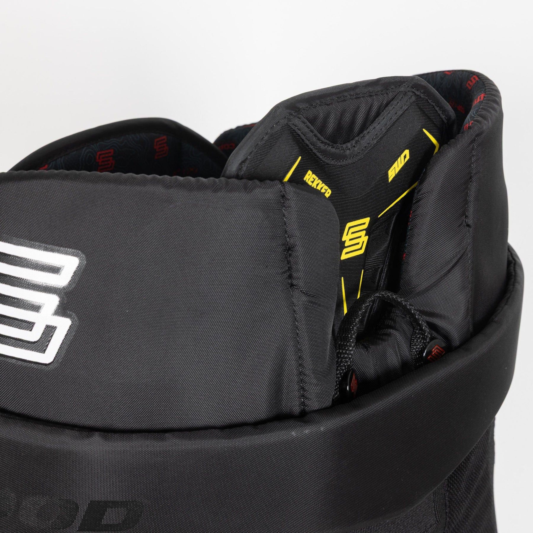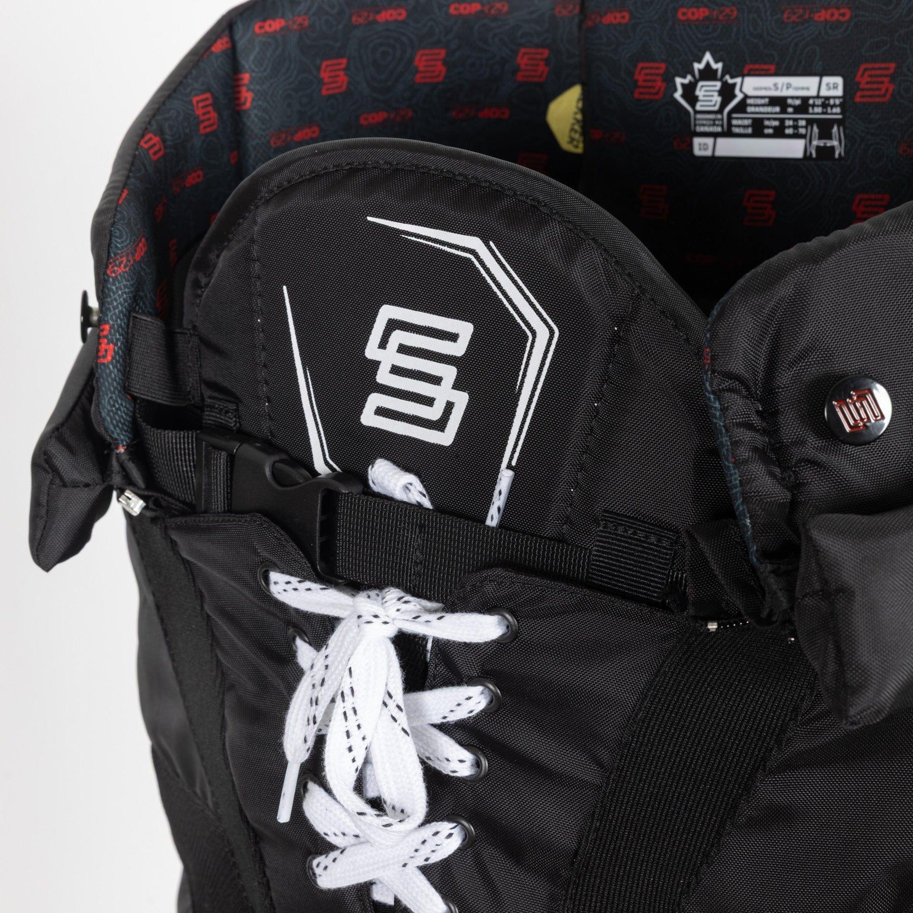 레커 SWD 하키 팬츠는 랩어라운드 벨트와 레이스 시스템을 사용하여 조절할 수 있습니다. 벨트는 조여서 고정할 수 있으며, 플레이어에게 맞는 핏을 제공합니다. 버클 시스템은 당기면 장력을 풀어줍니다. 레이스는 묶었을 때 팬츠를 제자리에 고정하는 데 도움이 됩니다.