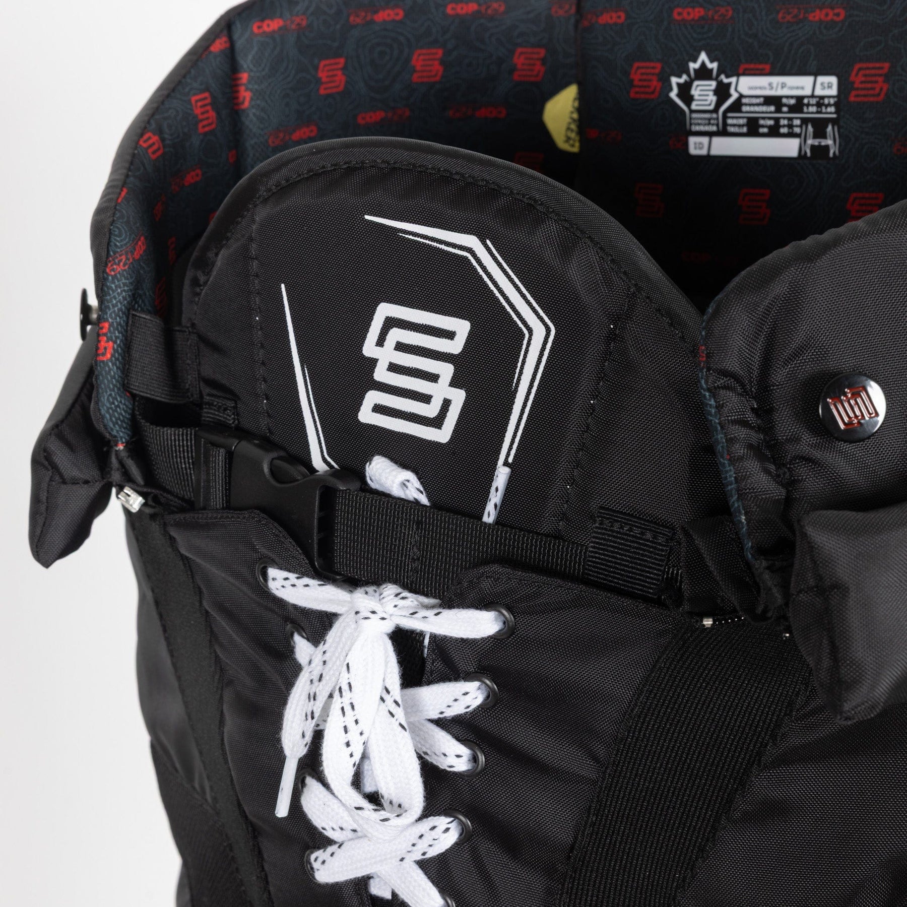Rekker SWD 하키 팬츠는 랩 어라운드 벨트와 스케이트 레이스 시스템을 사용하여 조절할 수 있습니다. 벨트는 조여 고정할 수 있으며, 플레이어에게 딱 맞는 핏의 티셔츠가 제작되었습니다. 버클 시스템은 착용 시 긴장감을 완화해 줍니다. 스케이트 레이스는 팬츠를 묶을 때 제자리에 고정하는 역할을 합니다.