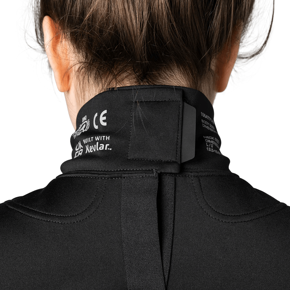 - 목과 쇄골 부위에 DuPont™ Kevlar® 브랜드 섬유를 사용하여 절단 방지 보호