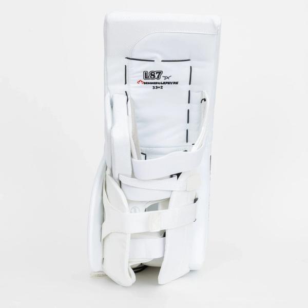 Catalyst L87 레그 패드는 외측 롤 브레이크가 하나 있습니다. 이는 패드의 외측 롤에, 일반적으로 무릎 아래 부분에 브레이크가 있는 디자인입니다. 이 디자인은 골리가 버터플라이 자세나 다른 넓은 스탠스를 취할 때 유연성과 기동성을 향상시켜 줍니다.