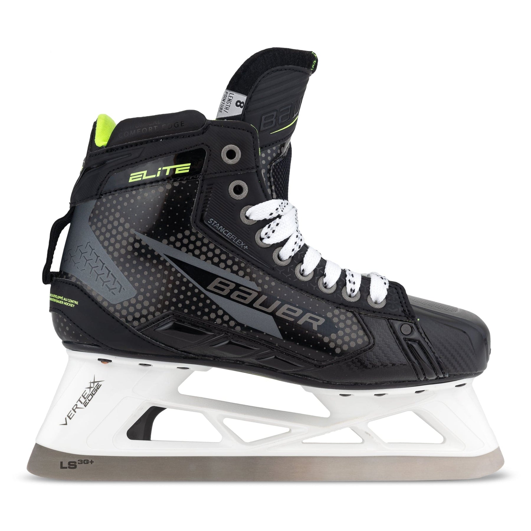 Bauer Elite 리터미디어 골리 스케이트는 Fit 2와 3뿐만 아니라 4~6.5 사이즈(풀 사이즈 및 하프 사이즈)로 제공됩니다.