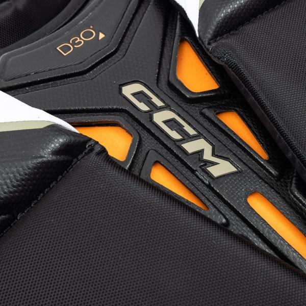 CCM은 이두근, 갈비뼈, 그리고 둥근 팔뚝 부위에 HD 폼을 사용했습니다. 갈비뼈 부분의 폼은 여러 부분으로 나뉘어 성형되었으며, 경기 내내 완벽한 보호를 위해 길게 감싸는 형태로 제작되었습니다. 또한 흉골/쇄골 부위에는 군용 등급의 D3O 폼을, 가슴 부분에는 Vent-Tech 코어 쉴드를 적용했습니다. D3O는 CCM 보호구에서 뛰어난 충격 흡수 능력으로 잘 알려져 있으며, 군용 장비에도 자주 사용됩니다. Axis 2 가슴 보호대를 사용하면 최고의 보호 기능을 누릴 수 있습니다.