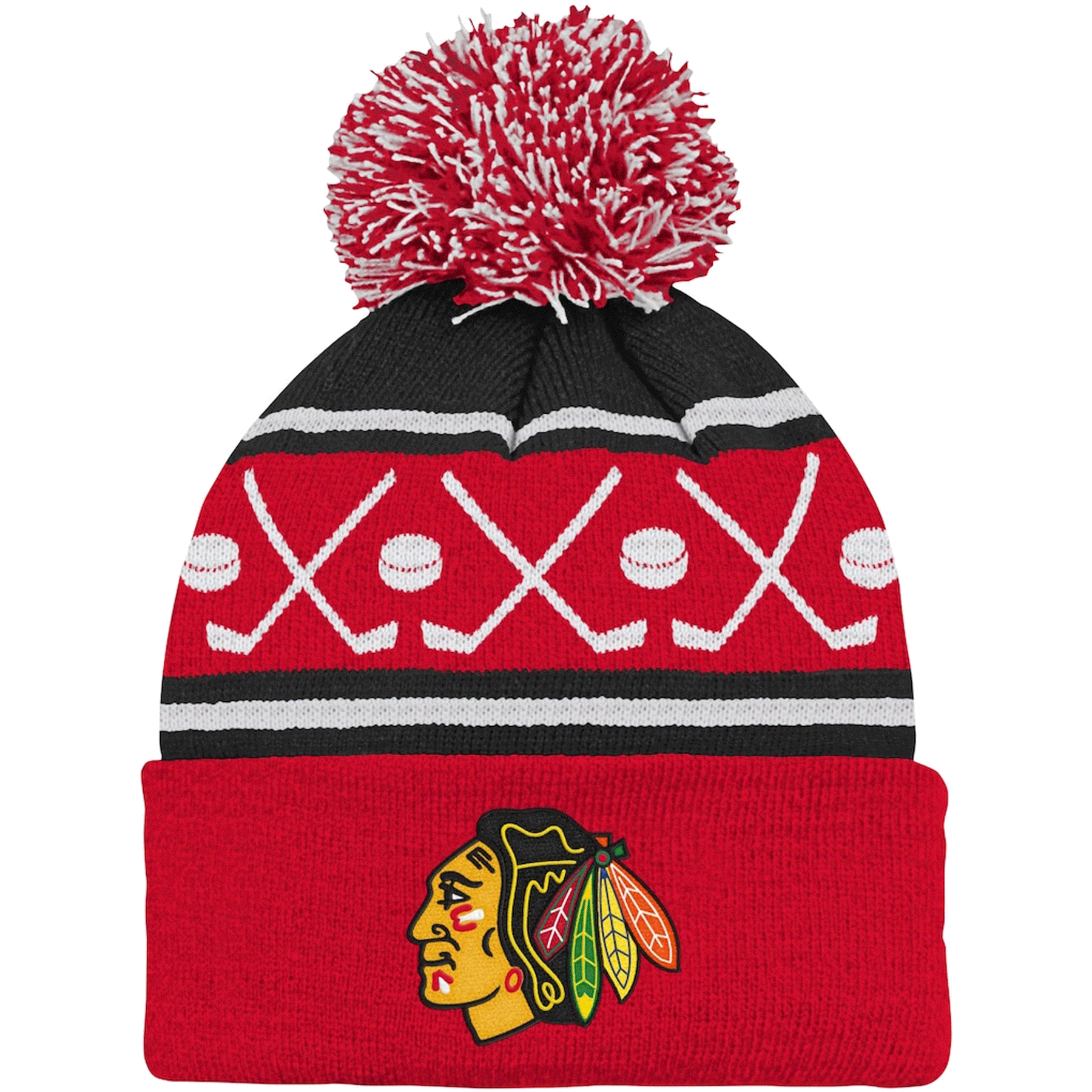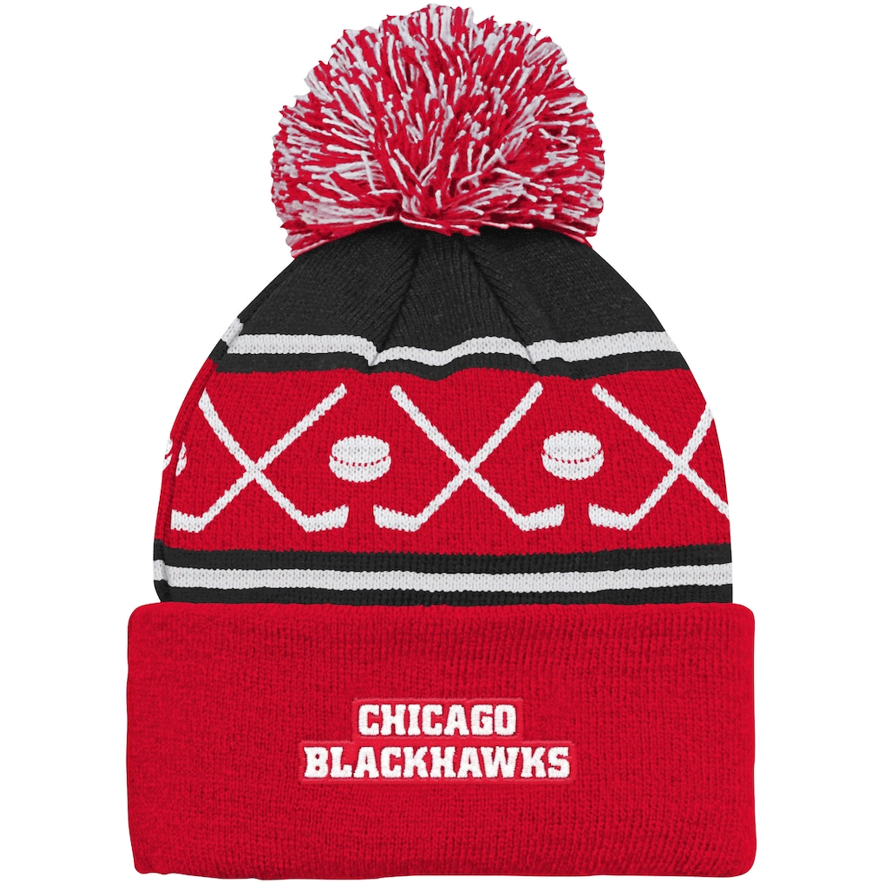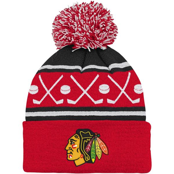 Outer Stuff NHL Faceoff Cuff Pom Toddler 비니 - Chicago Blackhawks