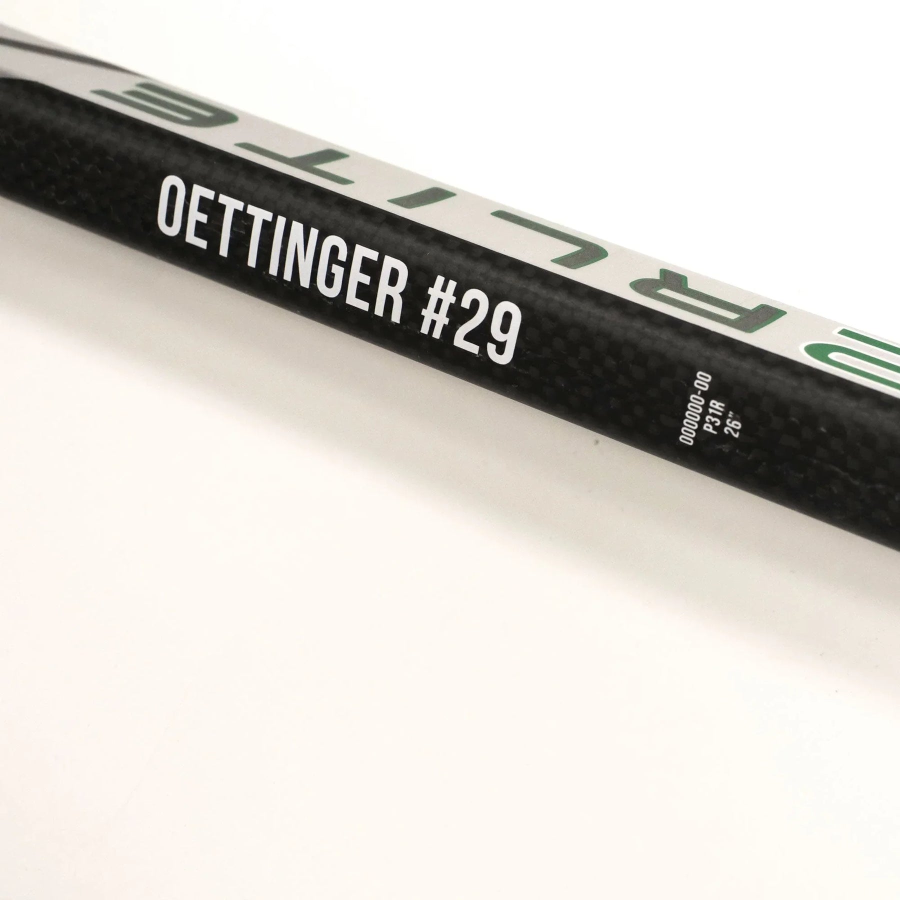 Vapor Hyperlite 2 성인 골리 스틱은 24인치, 25인치, 26인치 길이로 제공되며, 화이트/그린 그래픽에 Oettinger #29 네임플레이트가 새겨져 있습니다.